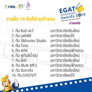 ที่ผ่านเข้ารอบ 10 ทีม ระดับภาคเหนือ จากการประกวด "EGAT Animation Awards 2019"