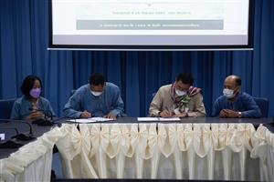 รองศาสตราจารย์ ดร.สมเกียรติ ชัยพิบูลย์ คณบดีคณะสารสนเทศและการสื่อสาร มหาวิทยาลัยแม่โจ้ ลงนามบันทึกข้อตกลงความร่วมมือทางวิชาการ โครงการศูนย์นวัตกรรมธุรกิจและวิจัยพัฒนาแนวใหม่แห่งมหาวิทยาลัยแม่โจ้  กับ วิสาหกิจชุมชนเกษตรธรรมชาติปลอดภัยแม่ปาน - สันเกี๋ยง 2  เมื่อวันที่ 26 สิงหาคม 2564 เวลา 10.00 น. ณ ห้องประชุม IC103 อาคาร 75ปีแม่โจ้ คณะสารสนเทศและการสื่อสาร มหาวิทยาลัยแม่โจ้