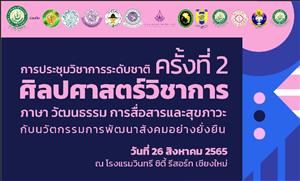 คณะศิลปศาสตร์ มหาวิทยาลัยแม่โจ้ ร่วมกับคณะสารสนเทศและการสื่อสาร มหาวิทยาลัยแม่โจ้ และเครือข่ายมหาวิทยาลัย ขอเชิญเข้าร่วมการประชุมวิชาการระดับชาติ ศิลปศาสตร์วิชาการ ครั้งที่ 2: "ภาษา วัฒนธรรม การสื่อสาร และสุขภาวะกับนวัตกรรมการพัฒนาสังคมอย่างยั่งยืน" วันที่ 26 สิงหาคม 2565 ณ โรงแรมวินทรี ซิตี้ รีสอร์ท, จังหวัดเชียงใหม่ สิ้นสุดส่งผลงานเข้าร่วม  15 พฤษภาคม 2565 บทความที่ได้รับการคัดเลือกจากคณะกรรมการผู้ทรงคุณวุฒิ “บทความยอดเยี่ยม” จะได้รับการตีพิมพ์ในวารสารศิลปศาสตร์ มหาวิทยาลัยแม่โจ้ซึ่งจัดอยู่ในฐานข้อมูล (TCI 1) ติดต่อสอบถามเพิ่มเติมที่ Website: http://www.libarts.mju.ac.th/libartsforum2/index.php  Facebook: https://web.facebook.com/libartsforum2?_rdc=1&_rdr  งานบริการวิชาการและวิจัย คณะศิลปศาสตร์ มหาวิทยาลัยแม่โจ้  หมายเลขโทรศัพท์: 053-875-200 ต่อ 173.   หมายเลขโทรสาร: 053-875-208.  E-mail: mju.libarts.forum@gmail.com