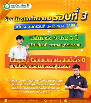 มหาวิทยาลัยแม่โจ้ เปิดรับสมัครนักศึกษา  ระบบ TCAS 65 รอบที่ 3 หลักสูตร 4 และ 5 ปี
