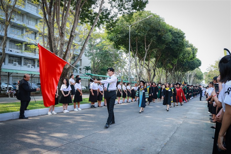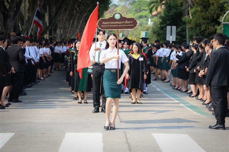 คณะสารสนเทศและการสื่อสาร จัดกิจกรรมฝึกซ้อมบัณฑิตสาขาวิชาการสื่อสารดิจิทัล เพื่อเตรียมความพร้อมในการเข้ารับพระราชทานปริญญาบัตร มหาวิทยาลัยแม่โจ้ ครั้งที่ 48 (ปีการศึกษา 2567–2568) โดยบรรยากาศเป็นไปด้วยความเรียบร้อย อบอุ่น และเปี่ยมด้วยความภาคภูมิใจของว่าที่บัณฑิตทุกคน ในการนี้ รองศาสตราจารย์ ดร.สมเกียรติ ชัยพิบูลย์ คณบดีคณะสารสนเทศและการสื่อสาร ได้ให้เกียรติกล่าวต้อนรับ พร้อมทั้งให้โอวาทแก่บัณฑิตสาขาวิชาการสื่อสารดิจิทัล โดยเน้นย้ำถึงความสำคัญของความรับผิดชอบ ความมุ่งมั่น และการพัฒนาตนเองอย่างต่อเนื่องในโลกยุคดิจิทัลที่มีการเปลี่ยนแปลงอย่างรวดเร็ว ตลอดจนการนำองค์ความรู้และทักษะที่ได้รับจากรั้วมหาวิทยาลัยไปประยุกต์ใช้ในการทำงานอย่างสร้างสรรค์ มีจริยธรรม และคำนึงถึงประโยชน์ของสังคมส่วนรวม การฝึกซ้อมบัณฑิตจัดขึ้นเมื่อวันที่ 16 กุมภาพันธ์ 2569 ณ ลานกิจกรรม ชั้น 1 คณะสารสนเทศและการสื่อสาร โดยมีคณาจารย์และเจ้าหน้าที่ร่วมดูแลอย่างใกล้ชิด เพื่อให้การฝึกซ้อมเป็นไปตามระเบียบแบบแผน ทั้งในด้านขั้นตอนพิธีการ การแต่งกาย การจัดแถว และการปฏิบัติตนในวันพิธีจริง กิจกรรมในครั้งนี้นับเป็นอีกหนึ่งช่วงเวลาสำคัญที่สะท้อนถึงความสำเร็จของบัณฑิต และความภาคภูมิใจของคณะสารสนเทศและการสื่อสาร ที่ได้ร่วมสร้างบัณฑิตคุณภาพสู่สังคม พร้อมก้าวไปเป็นกำลังสำคัญในการพัฒนาประเทศในอนาคต